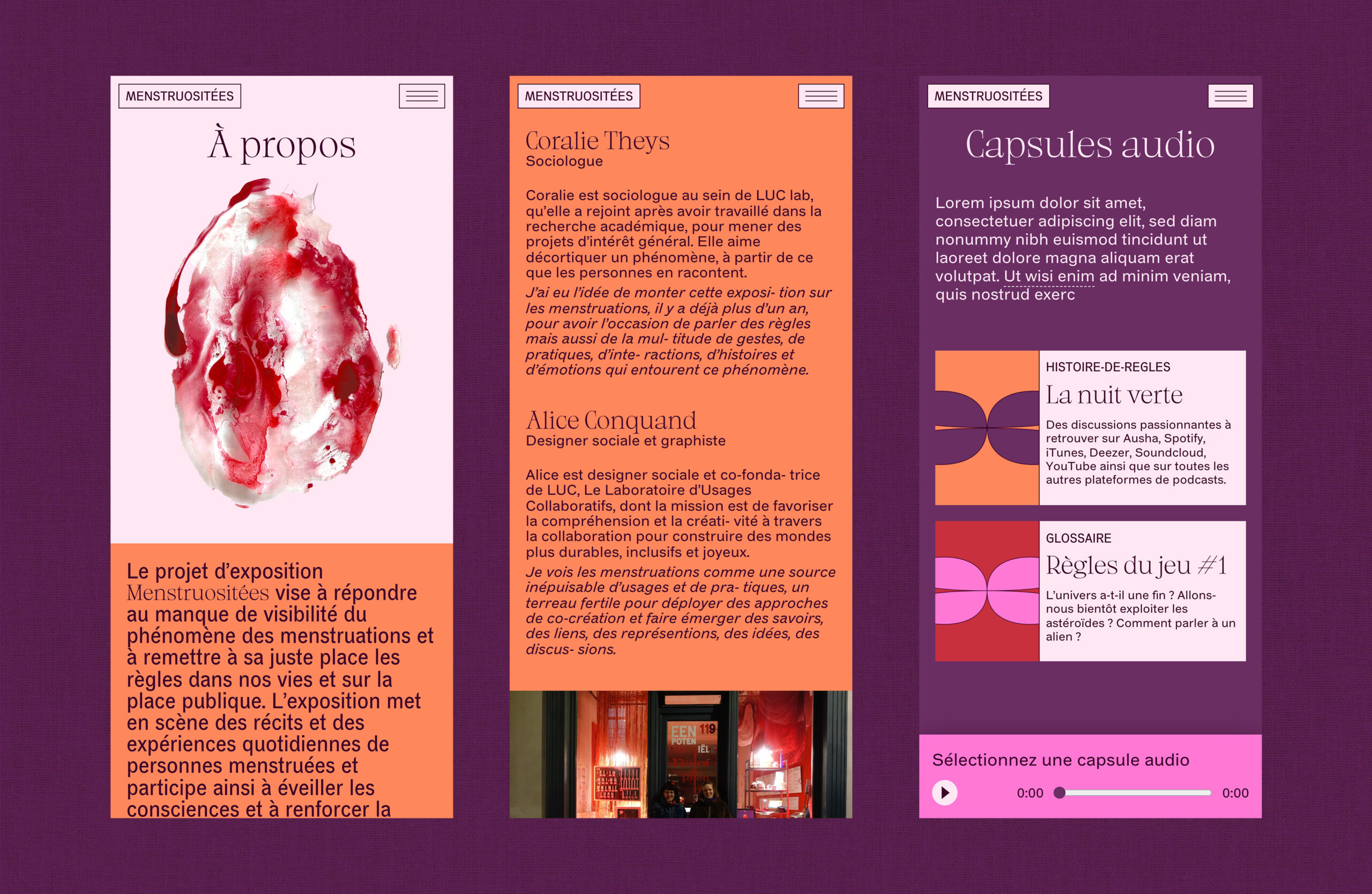 Création d’un langage visuel haut en couleur et ensanglanté pour le site web de Coralie Theys, sociologue et Alice Conquand, designer sociale et graphiste.